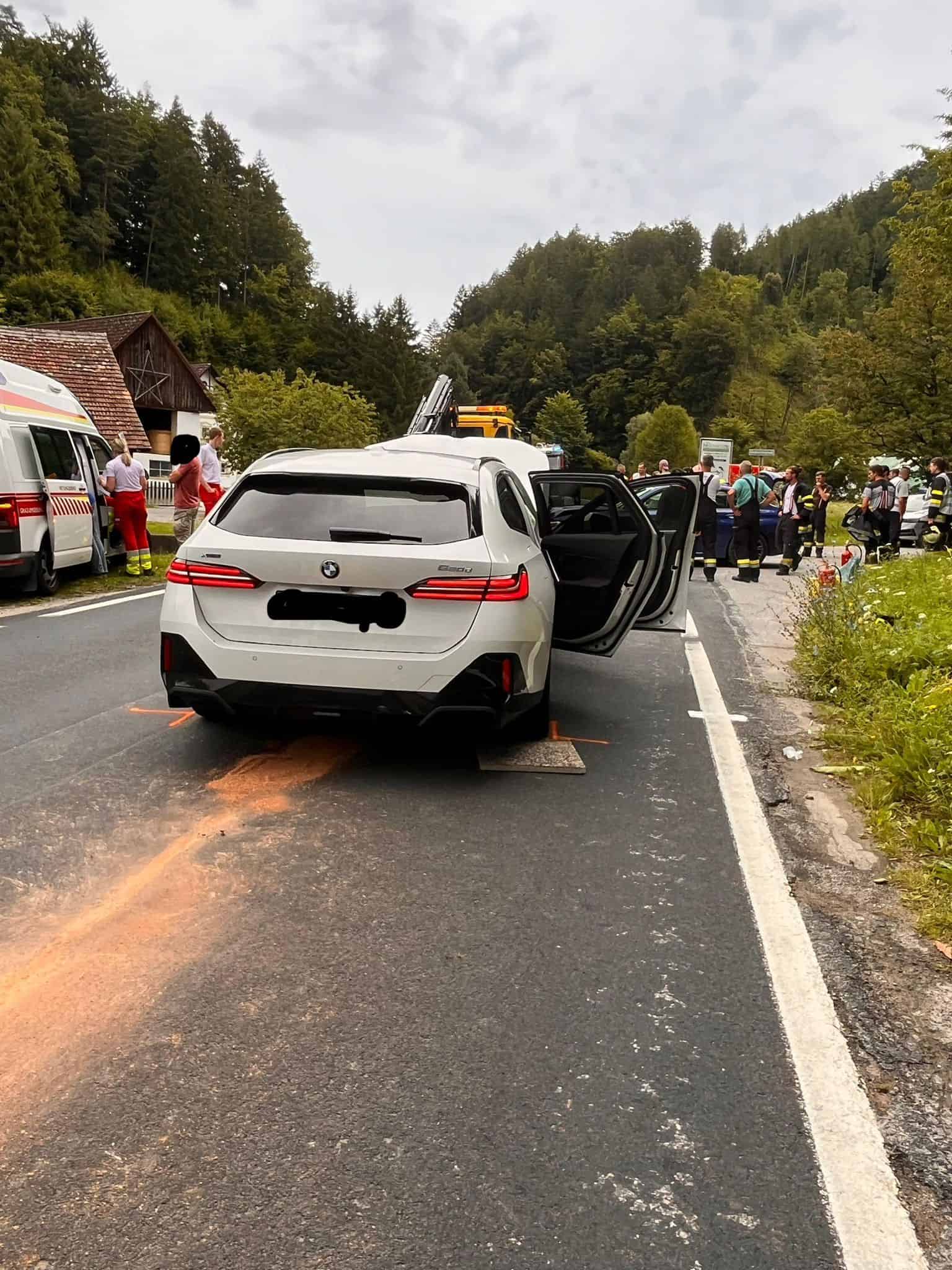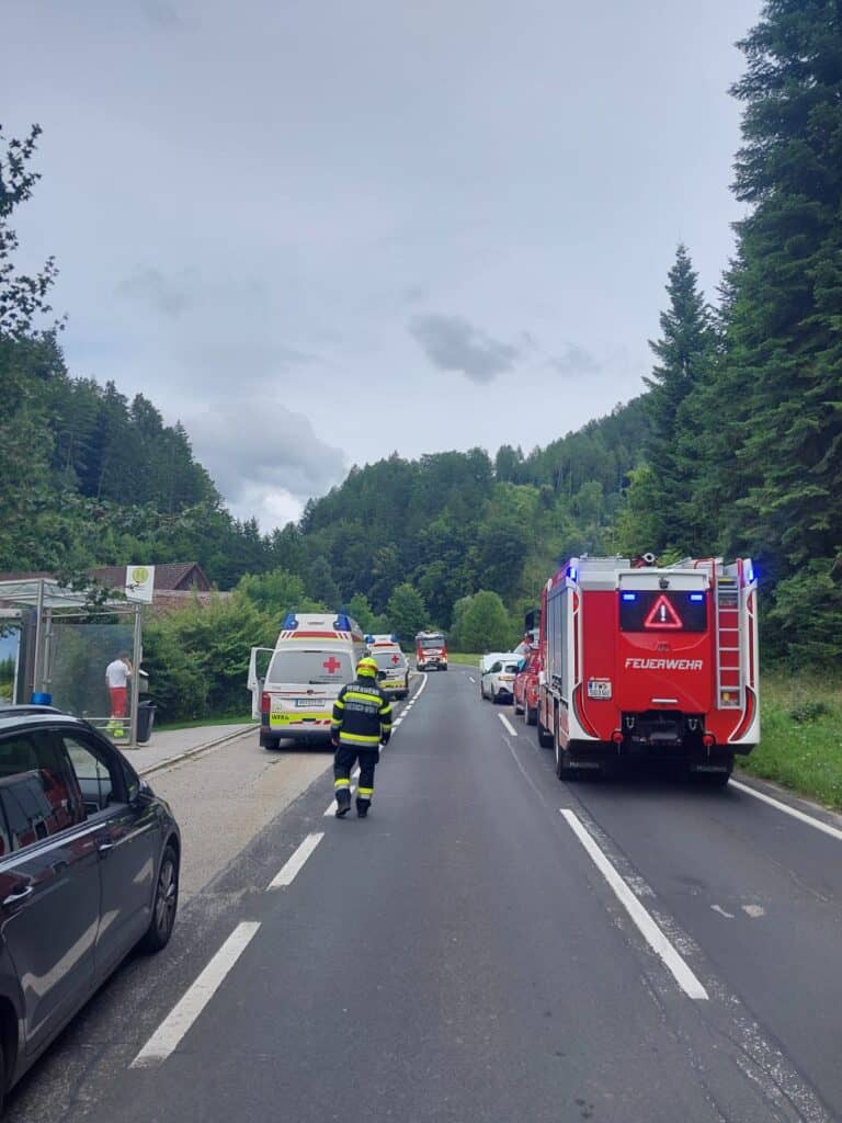 FF Friesach-Wörth, FF Semriach, Polizei, Rotes Kreuz, Abschleppunternehmen