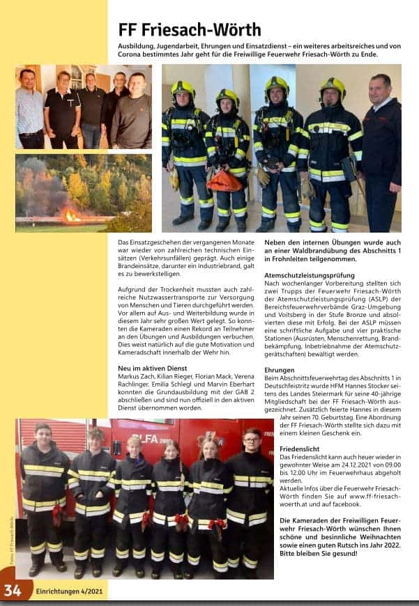Am Stefanitag dem 26.12.2021 wurden wir um 12:00 Uhr zu einem Dachstuhlbrand in Friesach im Ortsteil Wörth alarmiert.Zeitgleich wurden laut
