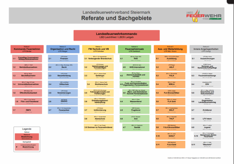 - sowie sechs Landesfeuerwehrräten (LFR), die zugleich als Referatsleiter fungieren.