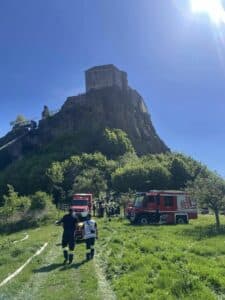 Mit unserem BLF und vier Mitglieder unserer Wehr waren wir mit unserer Tragkraftspritze in der Zubring- und Löschleitung über den exponierten „Eselssteig“ integriert.