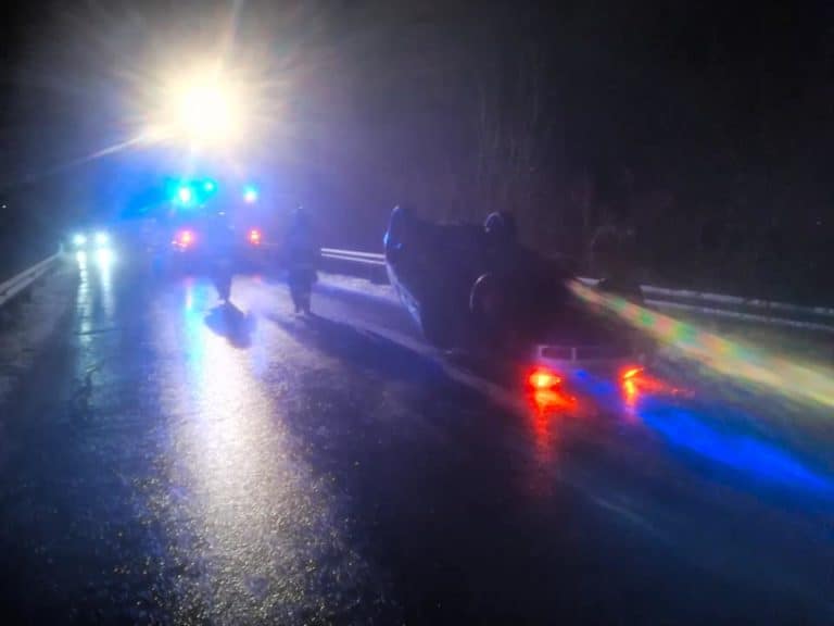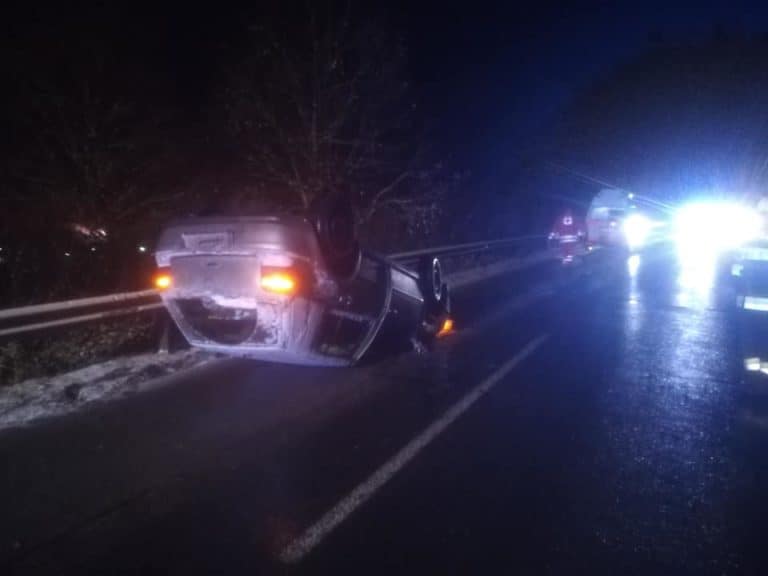 Ein PKW Lenker ist aus ungeklärter Ursache mit seinem Fahrzeug auf die Leitschiene geraten, hat sich daraufhin überschlagen und blieb am Dach liegen.